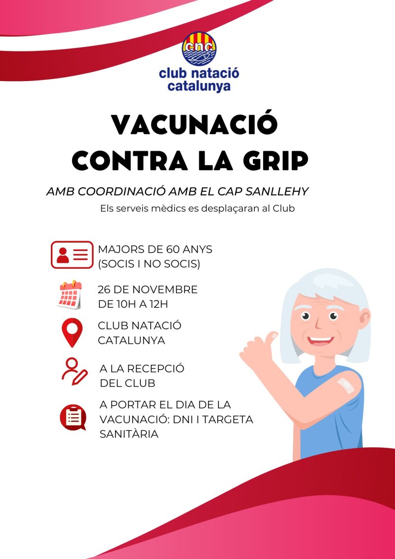 Per a vacunar-se, caldrà apuntar-se a la Recepció del Club i portar el DNI i targeta sanitària el dia de la vacunació.